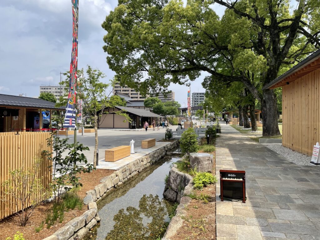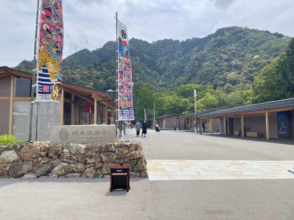 岐阜公園では、2025年4月26日(土)に、戦国時代をテーマにした新たな商業施設「岐阜城楽市(ぎふじょうらくいち)」がオープンしました。グルメ、お土産、カフェなど11店舗が集まる新しいにぎわいの拠点として、「岐阜」を嗜み、おもてなしを堪能できるスポットです。