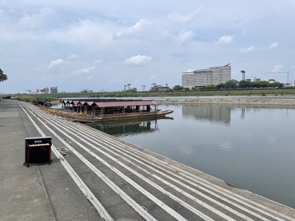 川原町には、鵜飼船の乗船場もあります。鵜飼の時期になると、この船着場に、ずらっと鵜飼観覧船が並んで、出港していきます。